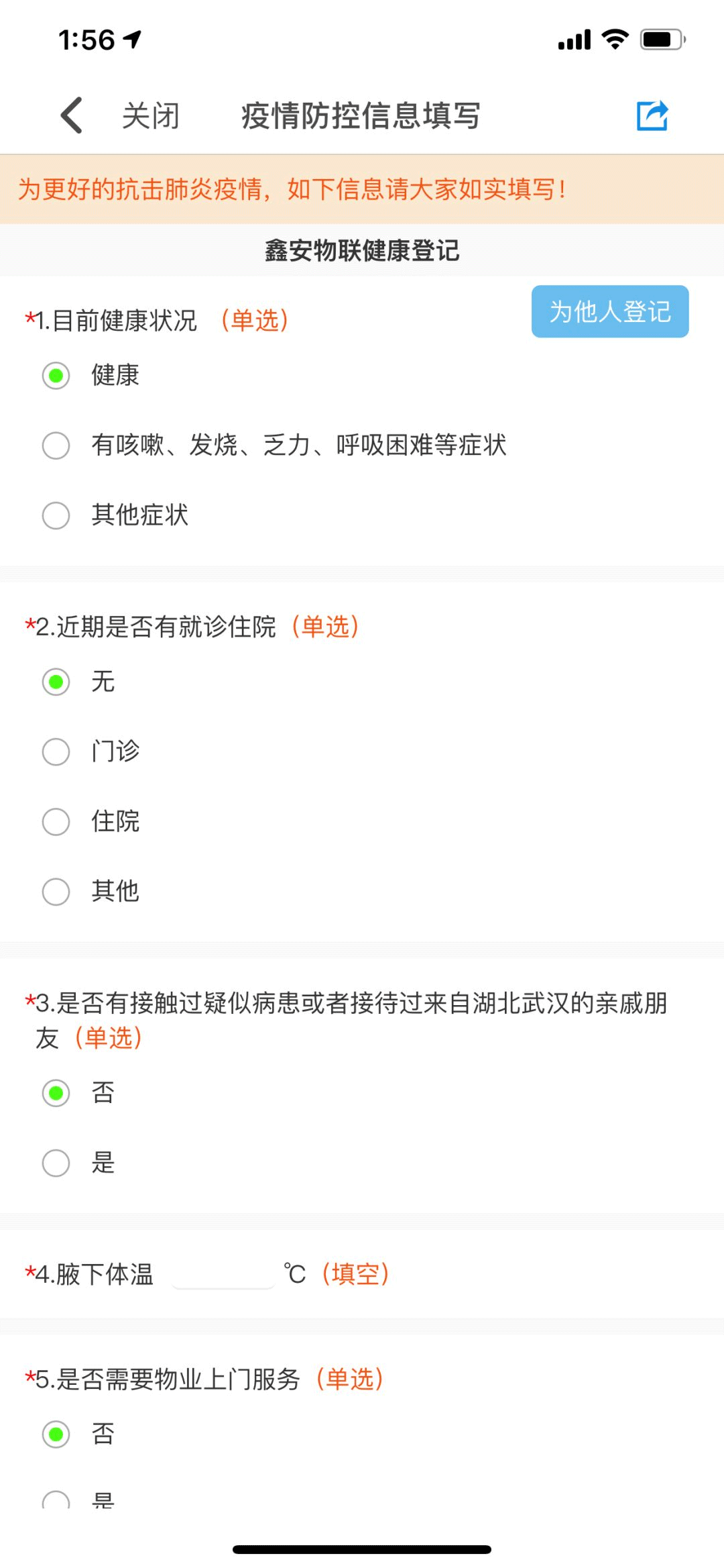 物業發布公告後,業主可打開91香蕉视频在线播放社區app點擊物業公告或使用微信、支付寶、釘釘(dìng)掃碼登記(jì),填寫相關信息(點擊為他人登記可以為家庭成(chéng)員進行登記)後進行提交。